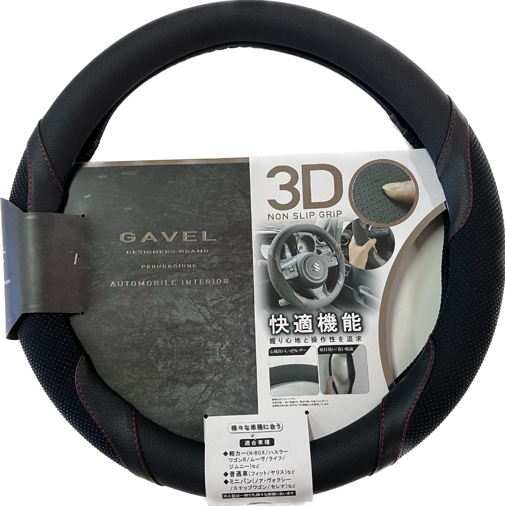 | ◆ガベル3Dステアリングカバー ブラック&レッド <品番:DH-213、JANコード:4549045102134>■入数 24個 Sサイズ 36.5~37.9cm |