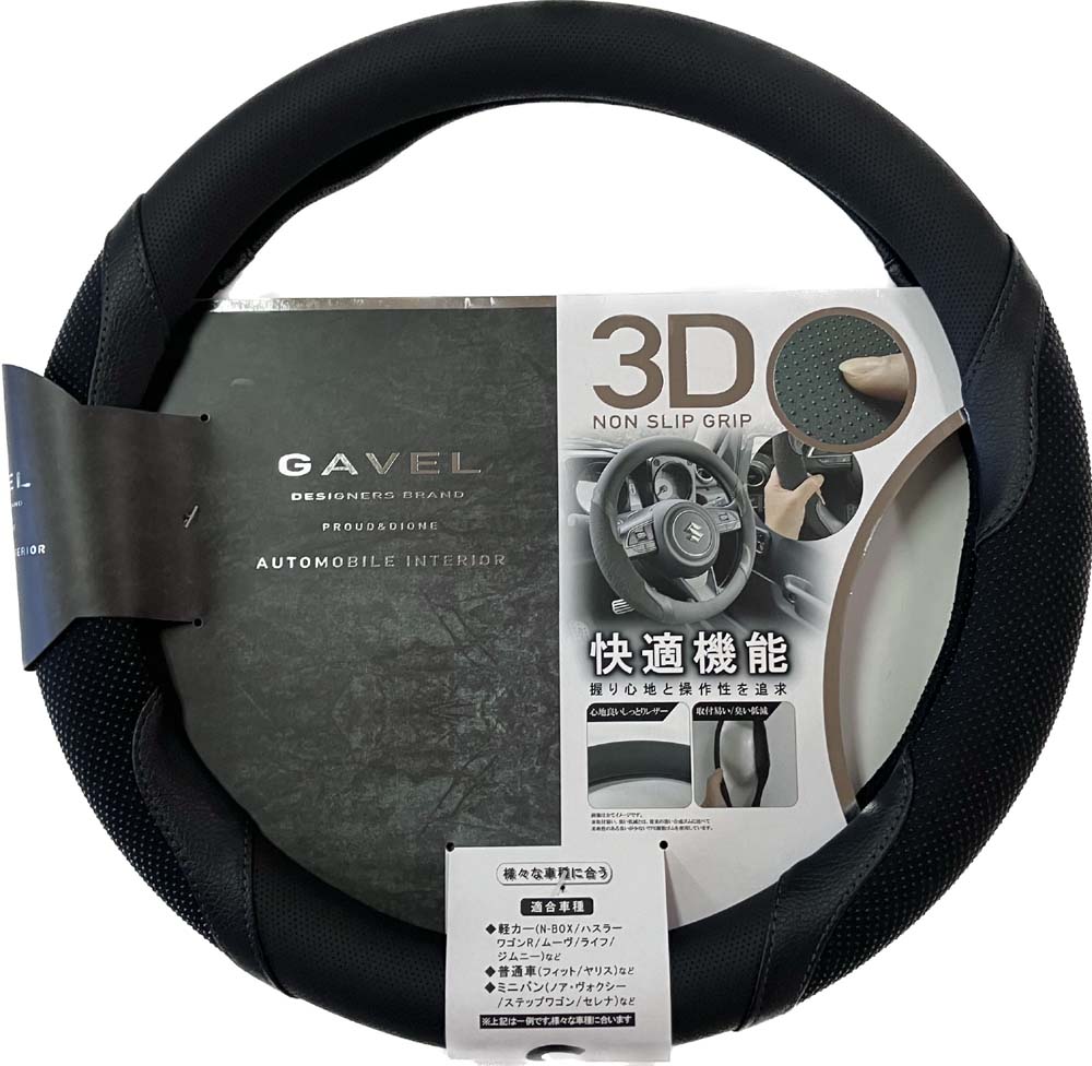 | ◆ガベル3Dステアリングカバー ブラック&ダークグレー <品番:DH-214、JANコード:4549045102141>■入数 24個 Sサイズ 36.5~37.9cm |
