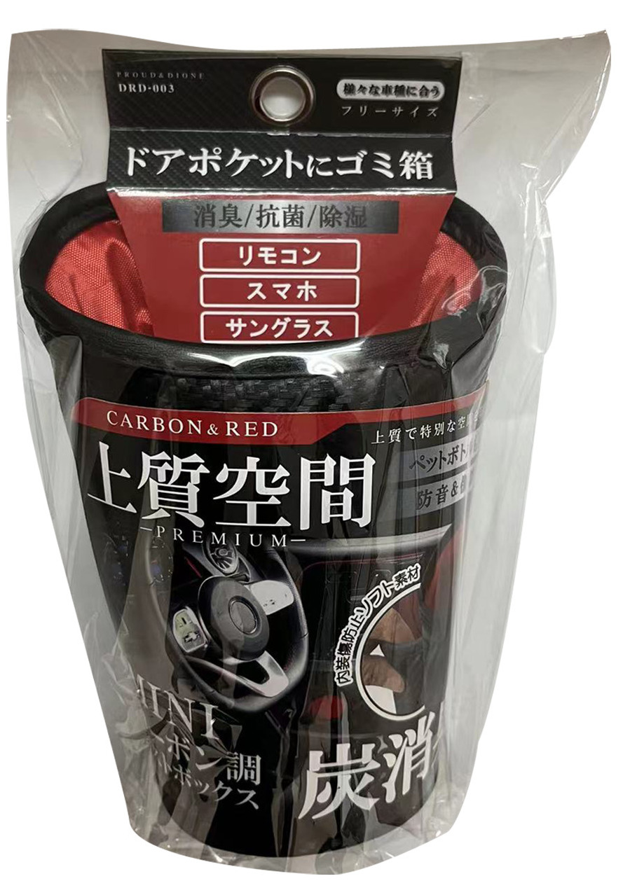 | ●どんな内装にも合う上質でお洒落なカーボン&レッド仕様 ドリンクホルダーや内ドアポケットで使えて便利 ●ソフト素材で収納物や内装の傷防止と気になるカタカタ音も防止します ●車内やご家庭のダストボックスとして、小物整理などのマルチ収納にも |
