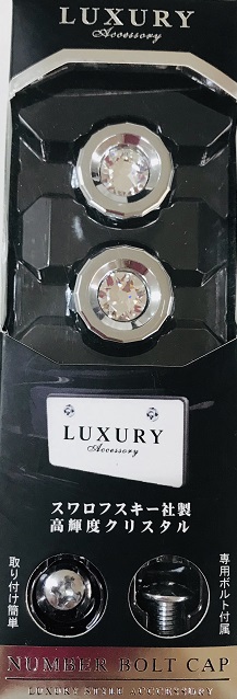 | ●ナンバーボルトに両面テープで被せるだけの簡単取付 ●メッキ×煌くクリアラインストーン ●2個入り |