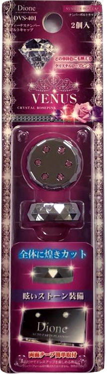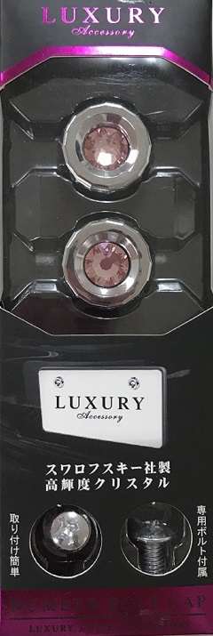 | ●ナンバーボルトに両面テープで被せるだけの簡単取付 ●メッキ×煌くピンクラインストーン ●2個入り |